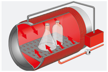 超強(qiáng)冷卻系統(tǒng),在配合可選的壓力支持的水冷系統(tǒng)和徑向通風(fēng)機(jī)的同時,又增加了一個額外的熱交換器,因此能顯著地縮短再次冷卻的時間和整個滅菌進(jìn)程。